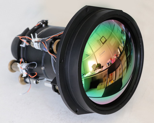 However, the 313-010 75-1100mm/f4.0 MWIR Zoom Thermal Imaging Camera Lens Module is heavier than the 313-004 Ultra-Lightweight 90-1100mm f/5.5 Continuous Zoom MWIR Thermal Imaging Camera Lenses, which only weigh 4.2kg. The weight of this large size f4.0 module is about 8.0kg. Nevertheless, Shalom EO’s 313-010 long range MWIR thermal imaging camera lenses are still much lighter than many of the counterpart lenses from other suppliers.