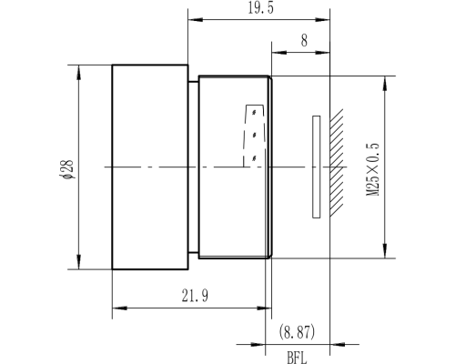 后工作距离 (B.W.D)