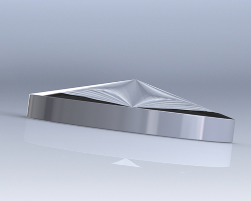 轴棱镜或称圆锥透镜,是一种具有锥面和平面的光学透镜,其形状由底角(称为物理角)和顶角定义。轴棱镜的工作原理是利用干涉效应沿光轴产生焦线。轴棱镜可用于产生近似无衍射贝塞尔光束,该光束是由一系列功率相等的同心环组成的光束,其光束由近场准直高斯光束变换而成。虽然贝塞尔光束在现实生活中并不存在,因为产生它需要无限的能量,但轴棱镜提供了一种很好的模拟方法,它能够在比类似的高斯光束更长的距离上保持无衍射贝塞尔光束的特性。平凸轴棱锥也可用于通过在远场投影将激光转换为环形,并且环的厚度将是入射激光束直径的 1/2。