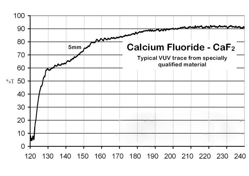 氟化钙(CaF2 或萤石)采用真空 Stockbarger 技术生长,直径可达约 250mm。用于红外应用的材料使用天然开采的萤石,以较低成本大规模生产。用于紫外应用时,一般采用化学制备的原料。用于 Excimer 激光应用时,仅使用经过严格挑选的最高等级材料和晶体。
