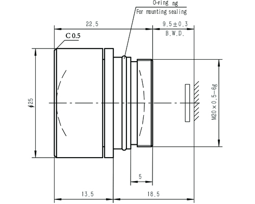 Materials of Lens Housing / Max. Dimensions (Diameter x Length) ɸ25x22.5mm