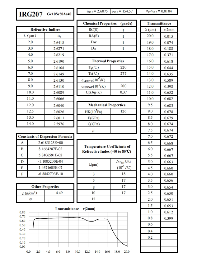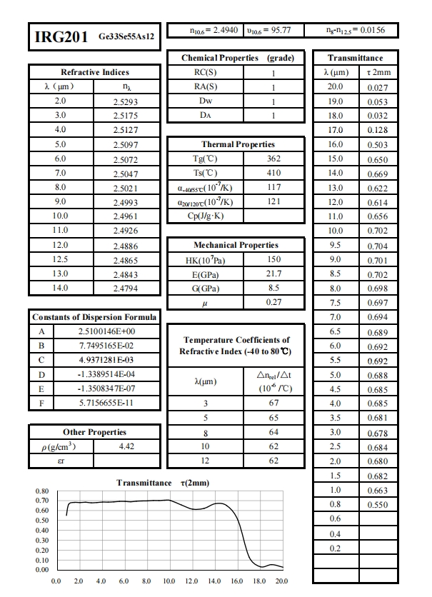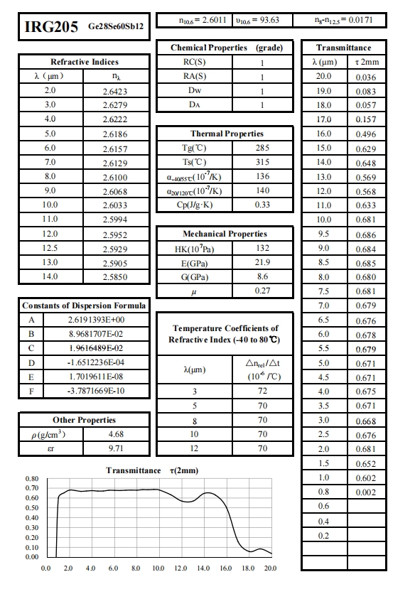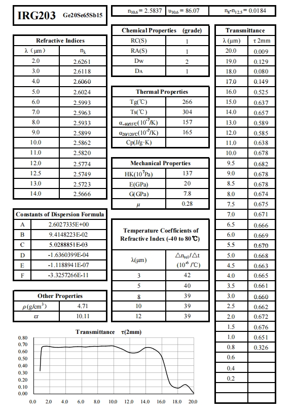 自20世纪50年代以来,SCHOTT、VITRON、UMICORE等玻璃和材料企业已开发成熟的硫族玻璃制备技术。近十年,中国企业如NHG也建立了一系列在全球市场广泛使用的硫族玻璃型号。Shalom EO提供不同型号硫族玻璃制成的透镜和球体。Shalom EO主要采用NHG的硫族玻璃(IRG系列)作为基材,包括IRG201, IRG202, IRG203, IRG204, IRG205, IRG206, IRG207,提供化学、光学和热学性能,并与SCHOTT、VITRON、UMICORE、PIKE等品牌的等效材料对应。